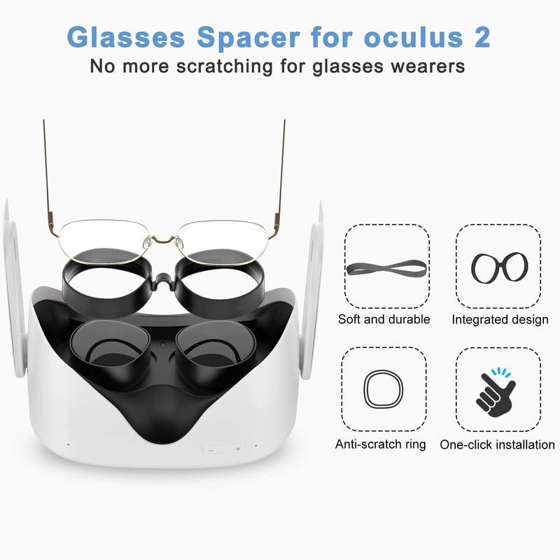 - 😎 Unique Design for Glasses Wearers - The simple and effective integrated design of VR glasses spacer allows you to easily avoid the problem of your frames falling and or becoming loose and keeps the image clear and protected at all times. The thoughtful arrow logo provides you with installation instructions.