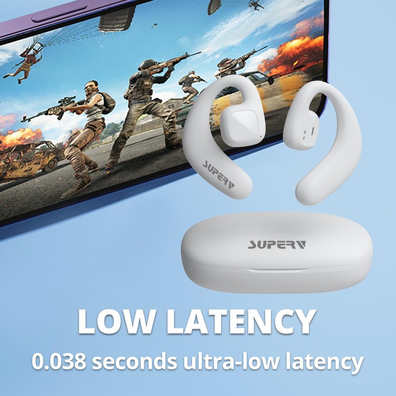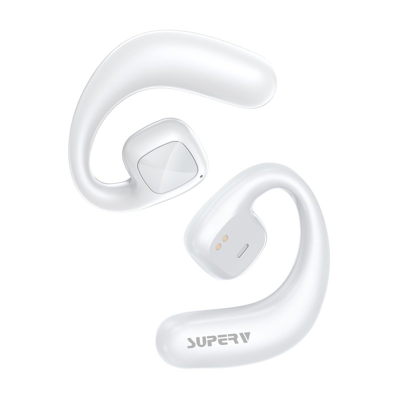 SUPERV Open Ear Headphones, Bluetooth 5.3 Wireless Earbuds with Earhooks,Fast Charging, Sweat Resistant, Digital Display Charging Case for Music, Game, Sport(White)