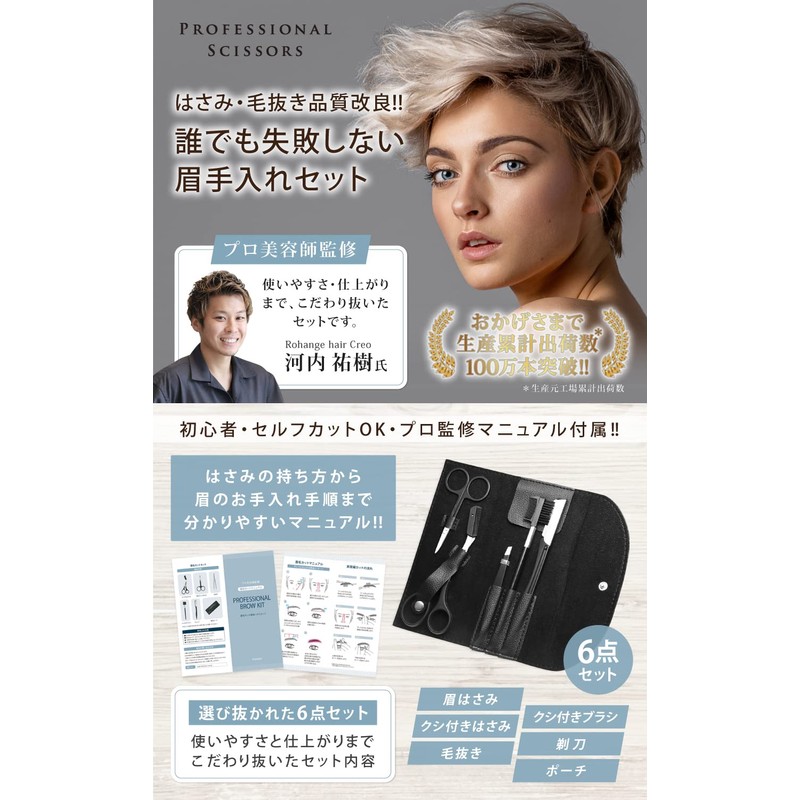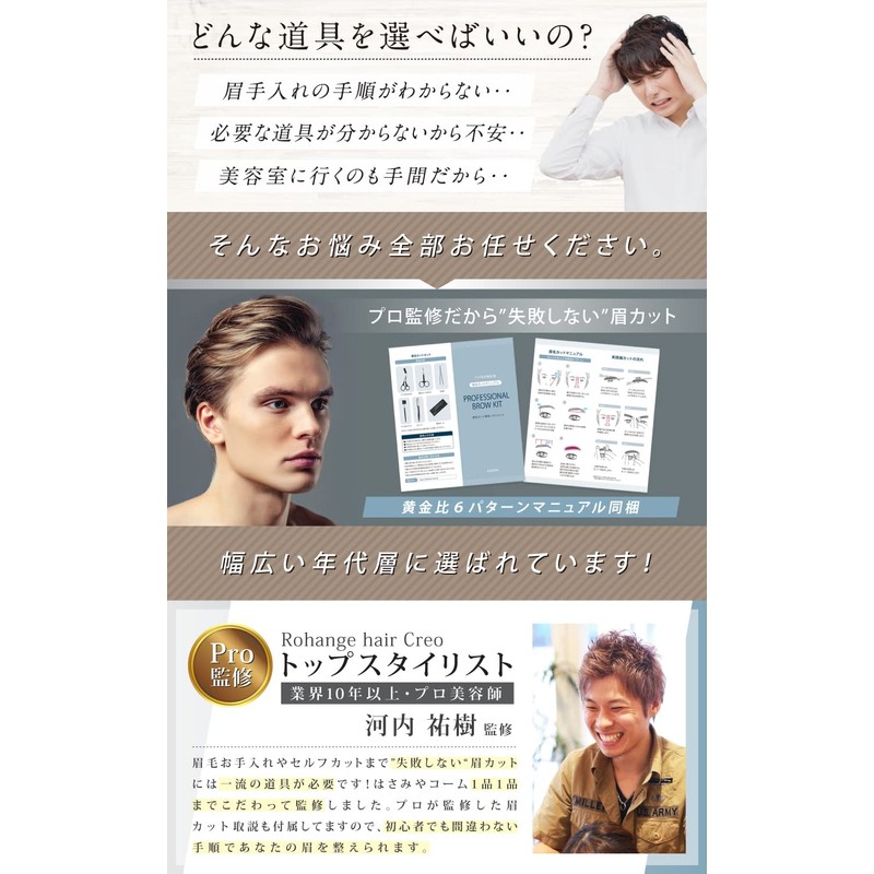[Supervised by Professional Beautician] Men's Eyebrow Set, Eyebrow Care, Eyebrow Shaving, Eyebrow Comb, Care Instructions Included (Removal, Improved Eyebrow Scissors)