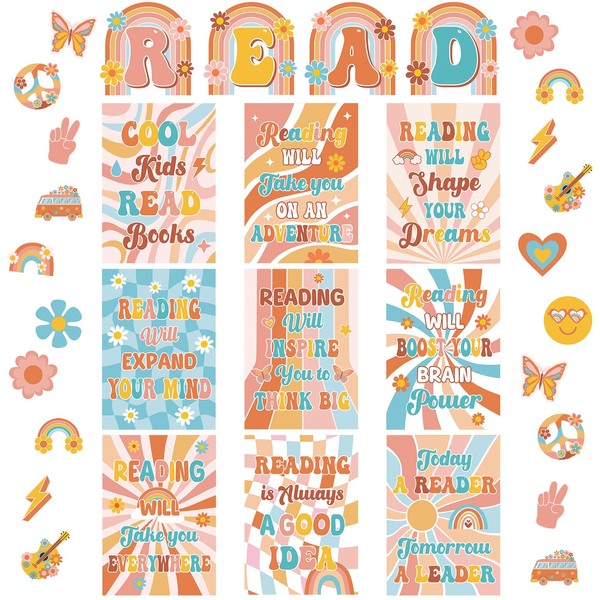 Supervitae 1 Set Retro Reading Poster Reading Classroom Decorations Set Groovy Retro Motivational Reading Bulletin Board Inspirational Poster for Classroom Wall Office Home Supplies