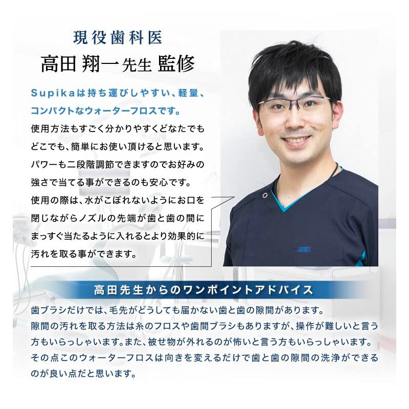 - 👨⚕️【セット内容】 本体、ノズルx2本、給水ホースx1本、専用ケース、取扱説明書、充電台