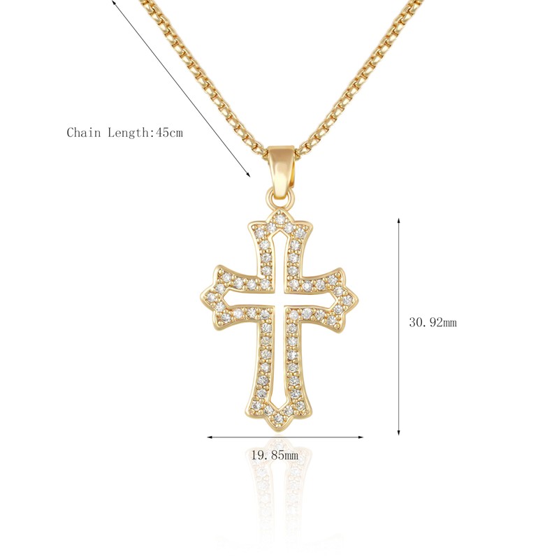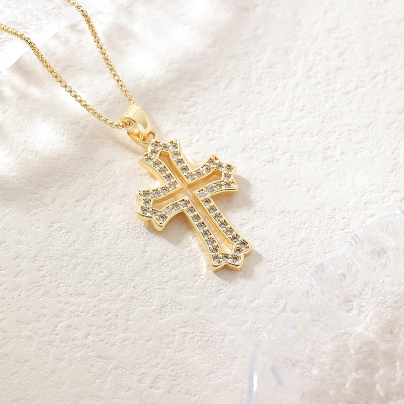 SUPJEWE 14K Gold Cross Pendant Necklace with Cubic Zirconia, Chain 17.7 inches, Chic, Hypoallergenic, Lightweight, Gold, Cubic Zirconia