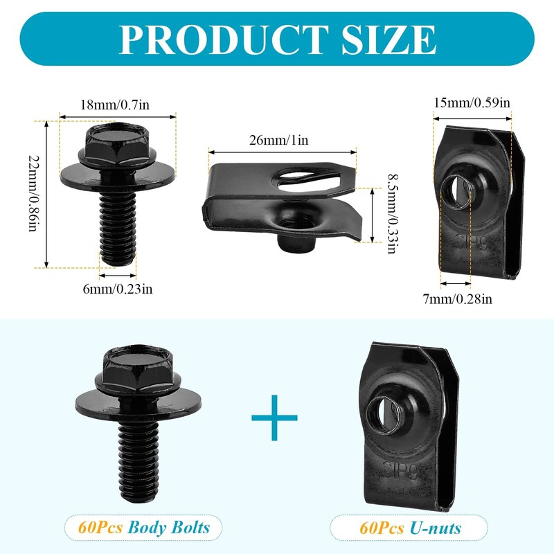 - 【Abundance】Includes 60 U-nuts and 60 washer bolts for ample daily use and replacements, ensuring you never run out during repairs or maintenance