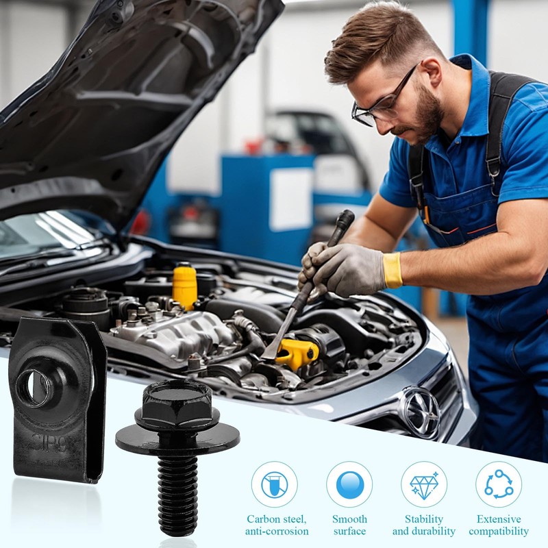 - 【Secure Fixing】Delivers exceptional fastening to enhance structural integrity, prevent loosening, and protect underbody panels from mud splashing, thereby extending engine lifespan