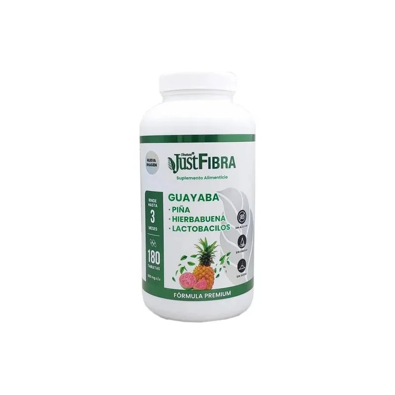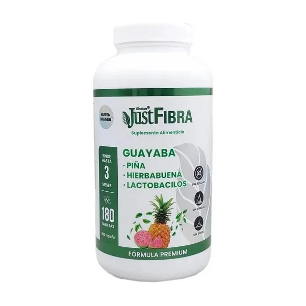 🌱 Justfibra Guayaba – Suplemento Alimenticio con Fibra Natural | 180 Tabletas Sin Sabor