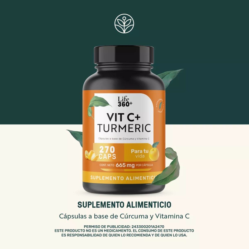 **Suplemento Alimenticio Life 360+ Vitamina C + Cúrcuma, 270 Cápsulas**