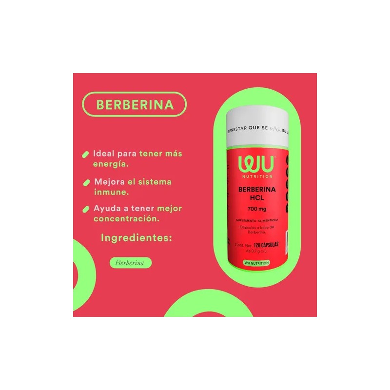 Descubre el poder natural de la Berberina Pura con Wu Nutrition®, un suplemento diseñado para quienes desean apoyar su metabolismo, energía y sistema inmune con ingredientes limpios y de alta calidad. Cada cápsula está elaborada sin aditivos ni sustancias artificiales, respetando los más altos estándares de pureza.