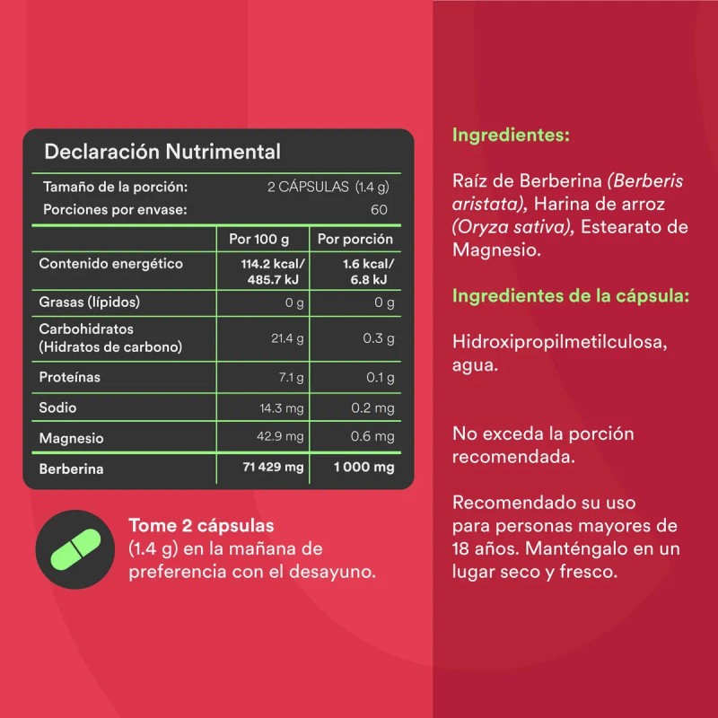 Modo de uso: Tomar 2 cápsulas al día, de preferencia con el desayuno.