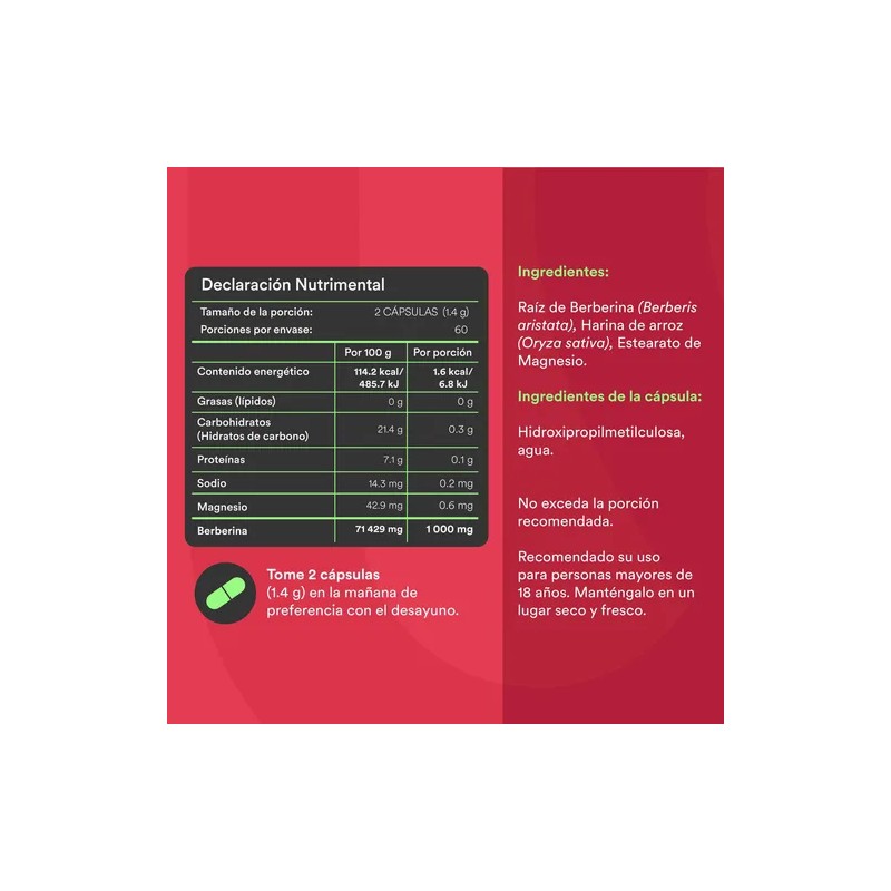 Suplemento Berberina Pura Wu Nutrition 120 Capsulas Sin sabor Para 2 Meses De Consumo Bienestar