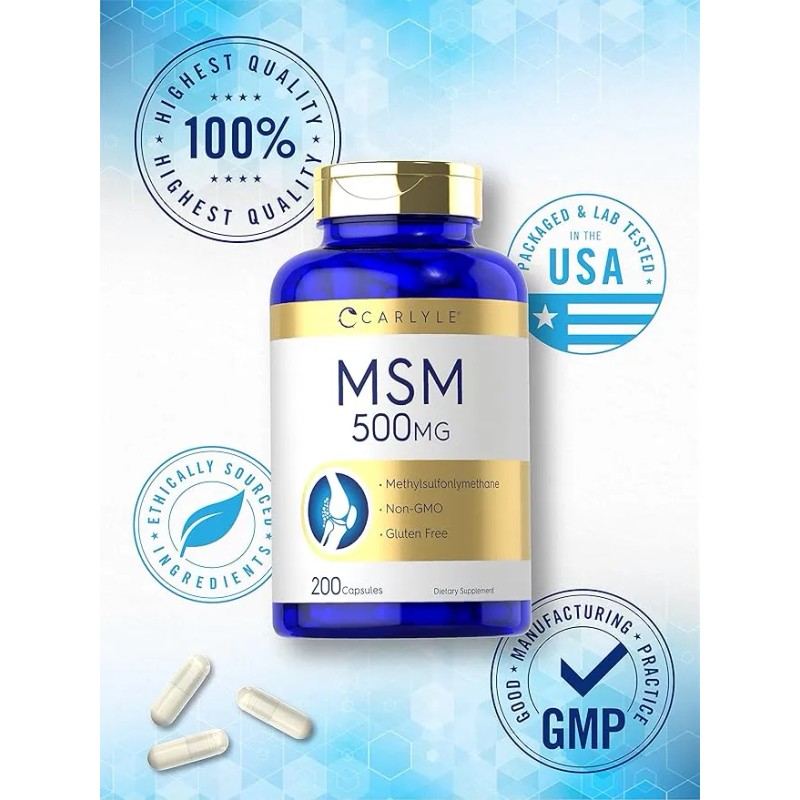 Suplemento Carlyle MSM Metilsulfonilmetano 500 mg 200 cpsulas sin gluten - Producto Original de Alta Calidad, Entrega Rápida y Segura, Garantía Inclui