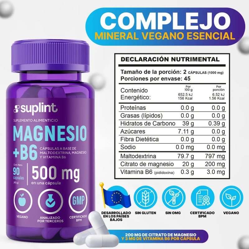 💊🧠 Citrato de Magnesio 200 mg + Vitamina B6 – 90 cápsulas: ¡Potencia tu energía, relaja tu cuerpo y fortalece tu salud diaria con este dúo esencial! 🌿💪 El magnesio ayuda a aliviar el estrés, los calambres musculares y apoya la función neuromuscular, mientras la vitamina B6 mejora su absorción y contribuye al sistema inmunológico y nervioso. ⚡🦴 Sin sabor, fácil de tomar y libre de gluten, este suplemento es perfecto para quienes buscan equilibrio físico y mental cada día. 🌈✨ ¡Siente la diferencia desde la primera toma! 🧘♀️💥 #RelajaciónNatural #EnergíaYBienestar #MagnesioConB6