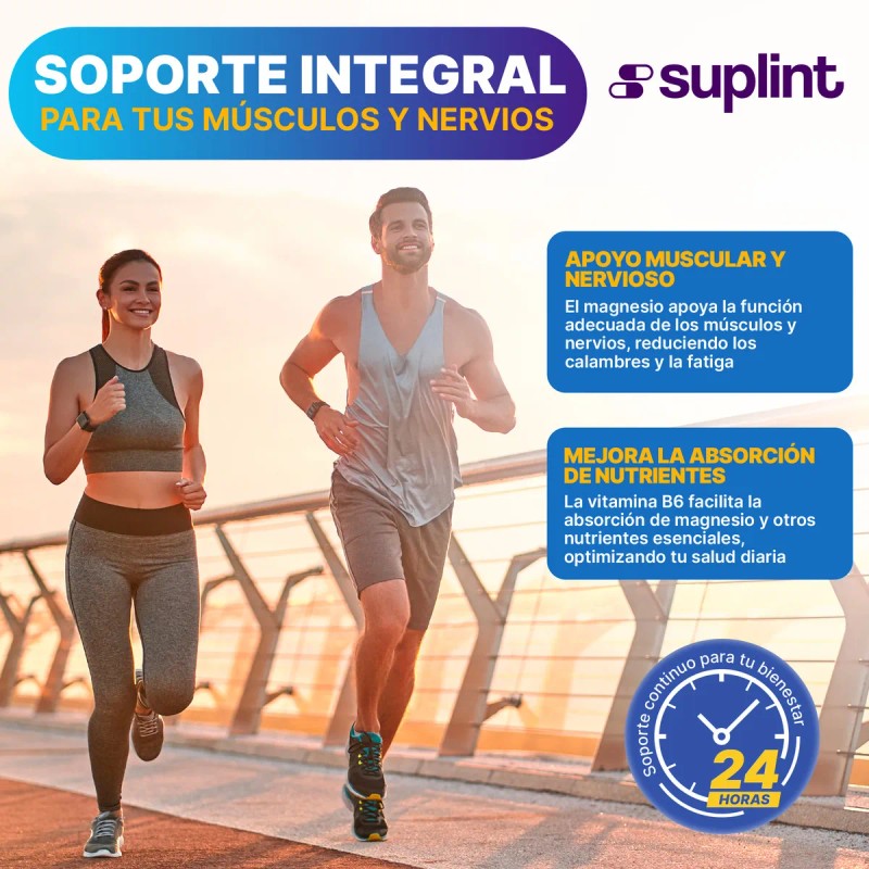 La vitamina B6 mejora la absorción del magnesio y a su vez contribuye al metabolismo energético y la producción de neurotransmisores. ⚡🧪