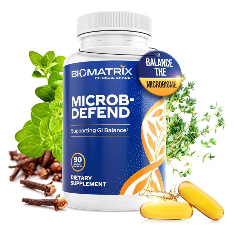 Promueve el equilibrio del tracto GI: Microb-Defend es una mezcla de aceites esenciales que actúan en sinergia para promover un equilibrio saludable del GI y la curación digestiva. Las cápsulas de gel suave contienen aceites de tomillo, orégano y clavo, un combo sinérgico destinado a ayudar a restaurar el equilibrio en el intestino.