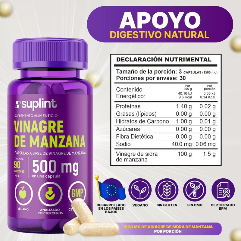 Suplemento De Vinagre De Manzana 1500 Mg 90 Cápsulas Sabor Sin sabor