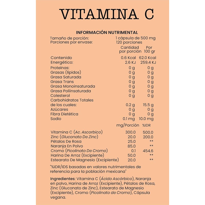 Suplemento de Vitamina C con Pétalos de Rosa y Zinc - Joycare 120 Cápsulas