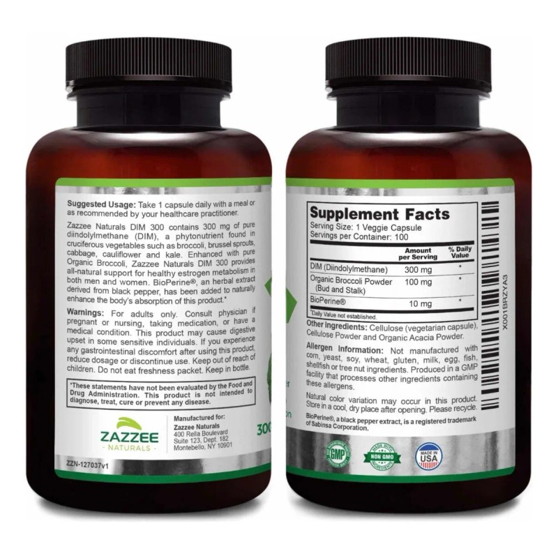 Suplemento Dim 300mg Con Bioperine (100 Cápsulas) Hecho E.u. Sabor Sin Sabor