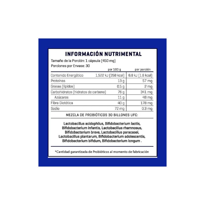 Libre de gluten y lactosa, es apto para personas con intolerancias alimentarias. Su presentación en cápsulas y sin necesidad de refrigeración lo hace perfecto para llevar contigo y tomarlo diariamente sin complicaciones.