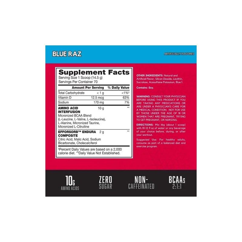 Suplemento en polvo BSN Endurance and Recovery Aminoácidos sabor blue raspber...
