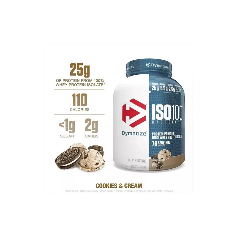 Suplemento En Polvo Dymatize Iso-100 Proteína Sabor Cookies & Cream En Pote De 2.3kg