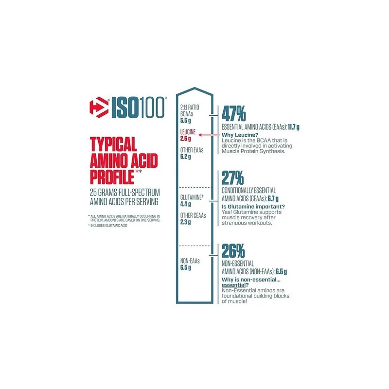 Conocido en todo el mundo por su calidad, sabor y pureza, ISO100 se produce según nuestros más altos estándares de calidad. ISO100 está formulado mediante un proceso de purificación de múltiples pasos y microfiltración de flujo cruzado que conserva importantes fracciones de proteínas para el desarrollo muscular al tiempo que elimina el exceso de carbohidratos, grasas, lactosa y colesterol.