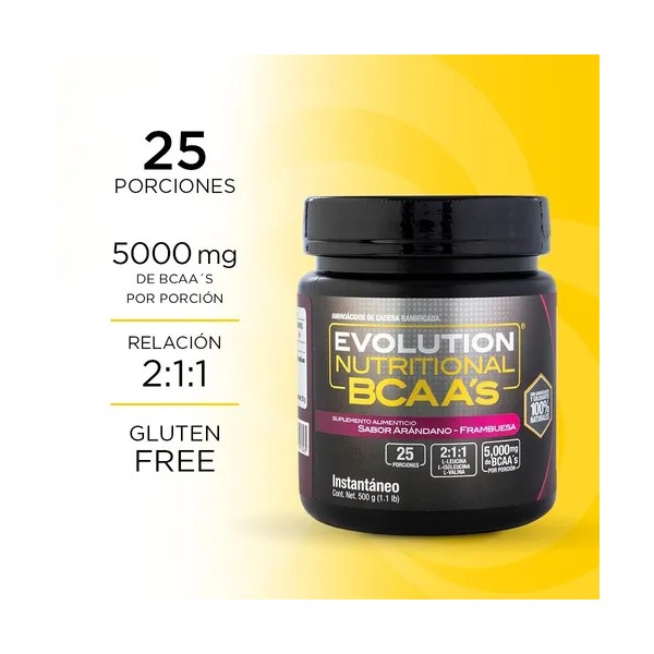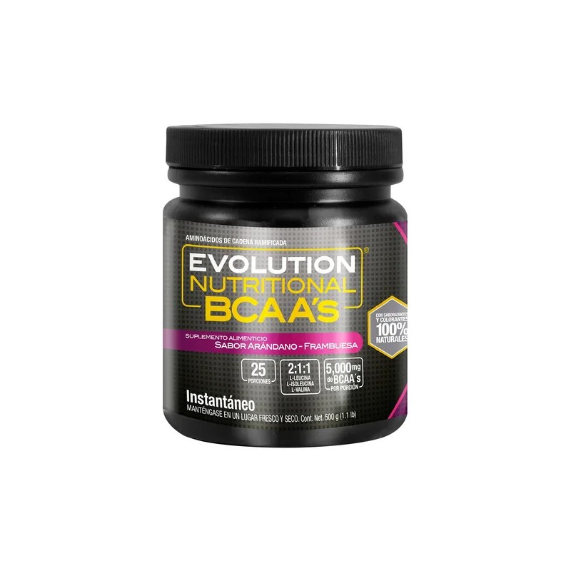 Suplemento en polvo Evolution BCAA's carbohidratos sabor arándano/frambuesa en pote de 500g
