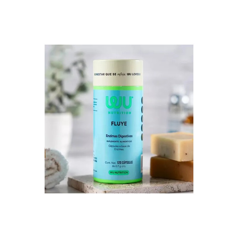 ¡Encuentra tu mejor versión con FLUYE de WU Nutrition®! Nuestra fórmula exclusiva a base de Enzimas Digestivas para recuperar la flora intestinal y calmar malestares en el estómago.