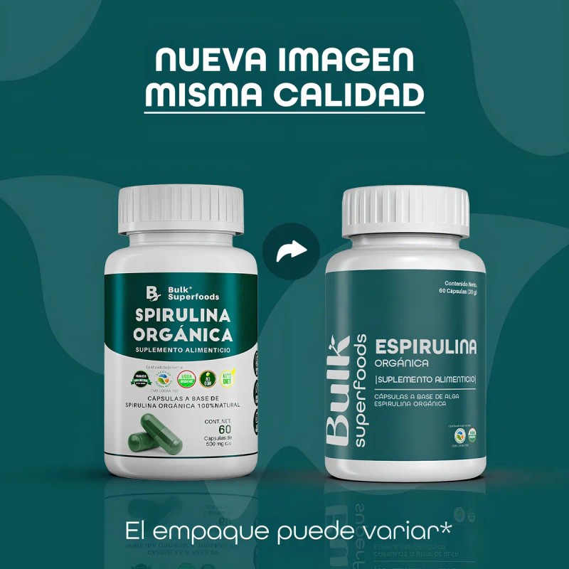 🌟 Suplemento Espirulina Orgánica 60 Cápsulas De 500 Mg Bulk Superfoods 100% Natural Sin Gluten Apto Dieta Keto | Suplemento Alimenticio A Base De Espirulina Orgánica En Cápsulas 🌟