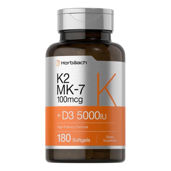 Suplemento Horbäach de vitamina D3 K2, 5000 UI, 180 g, cápsulas