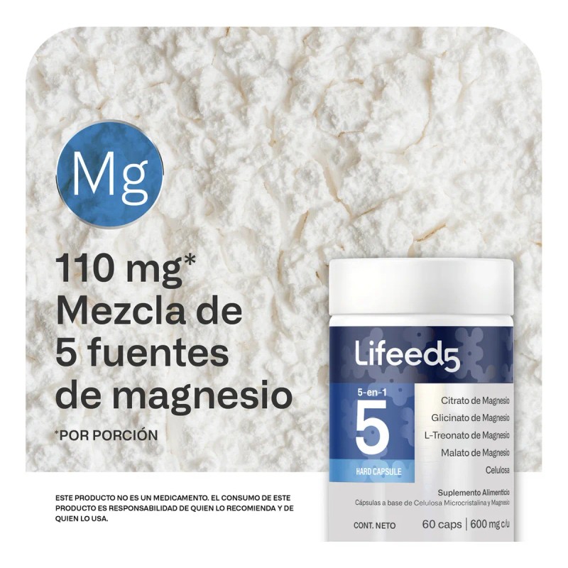 Suplemento Magnesio 5 En 1 Lifeed5 Citrato De Magnesio, Glicinato De Magnesio...