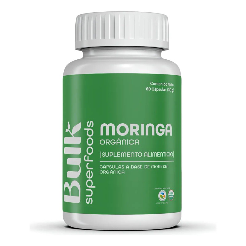 Suplemento Moringa Orgánico 60 Cápsulas De 500 Mg Bulk Superfoods 100% Natural Sin Gluten Apto Dieta Keto | Suplemento Alimenticio A Base De Moringa Orgánico En Cápsulas