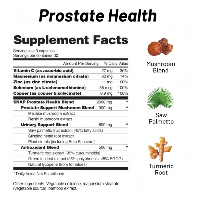 Suplemento Nutricional Snap Prostate Health Para Mejorar El Rendimiento Masculino, Favorecer La Calidad De Vida Y Aumentar La Satisfacción De La Pareja