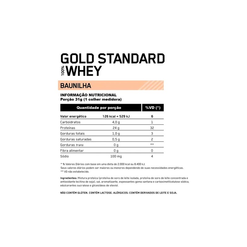 INGREDIENTES: 24 gramos de proteína de suero de leche de alta calidad por porción para apoyar la recuperación muscular con solo 3 a 4 gramos de carbohidrato. 11 gramos de aminoácidos esenciales naturales (EAA) y 5 gramos de BCAA’s para apoyar la recuperación muscular. La marca Gold Standard representa la más alta calidad, que impulsa más de 2 mil millones de recuperaciones de entrenamiento en todo el mundo desde 1998.
