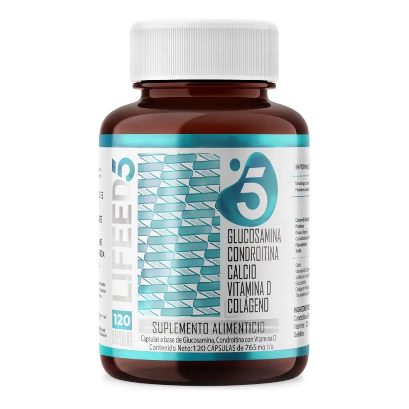 - Las Pastillas para Articulaciones de Lifeed5 representan un avance significativo en el cuidado y soporte de las articulaciones, huesos y cartílagos. Este suplemento alimenticio, enriquecido con una potente mezcla de Glucosamina, Condroitina, Colágeno Hidrolizado, Calcio y Vitamina D, está diseñado para ofrecer un alivio efectivo del dolor articular y promover la salud ósea. Con 120 días de suministro, Lifeed5 Joint Support se presenta como una solución integral para hombres y mujeres que buscan fortalecer sus articulaciones y mejorar su calidad de vida. La fórmula, libre de gluten y azúcar, asegura la máxima calidad y eficacia, utilizando ingredientes de origen natural en sus dosis óptimas permitidas. Ficha Técnica: