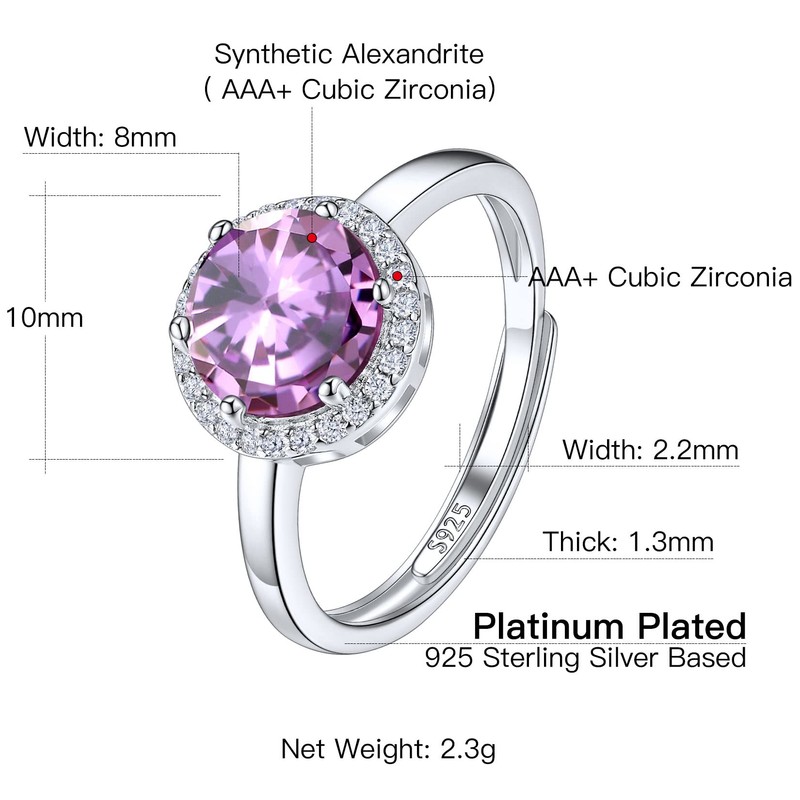 - JUNE BIRTHSTONE RING: 8mm round cut cz birthstone ring with 925 silver stamp. 1mm band thin but sturdy, adjustable to fit the small or large finger from size 6 to 12.