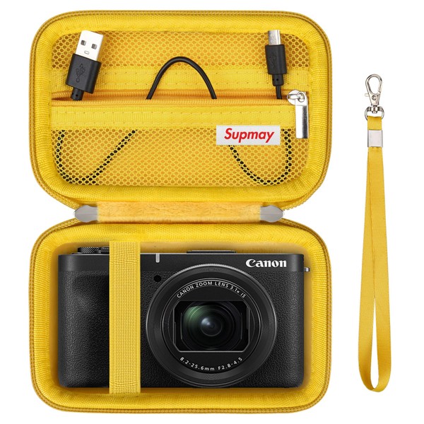 Supmay Hard Carrying Case for Canon PowerShot V1 Digital Camera, Storage Holder Travel Bag with Zipper Mesh Pocket for Battery Pack, Charging Cable, USB Card, Yellow