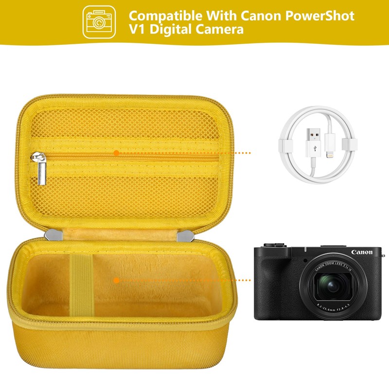 - FULLBODY PROTECTION: Canon PowerShot V1 case is made of sturdy EVA soft velvet material, Hard EVA shell case is shockproof dustproof and water resistance, protect your PowerShot V1 volgging camera from drops, scratches, bumps, splash, and dust. The exquisite wiring and double sutures make protector for digital point shoot cameras durable.
