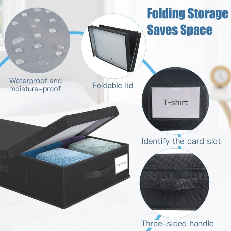 - Versatility Storage Bins: From blankets and pillows to out-of-season clothes and shoes, to books and toys, these storage containers can handle all types of storage needs. Transparent Label pockets for your marking and identification. It is suitable for dormitory, attic, basement, and bedroom use.