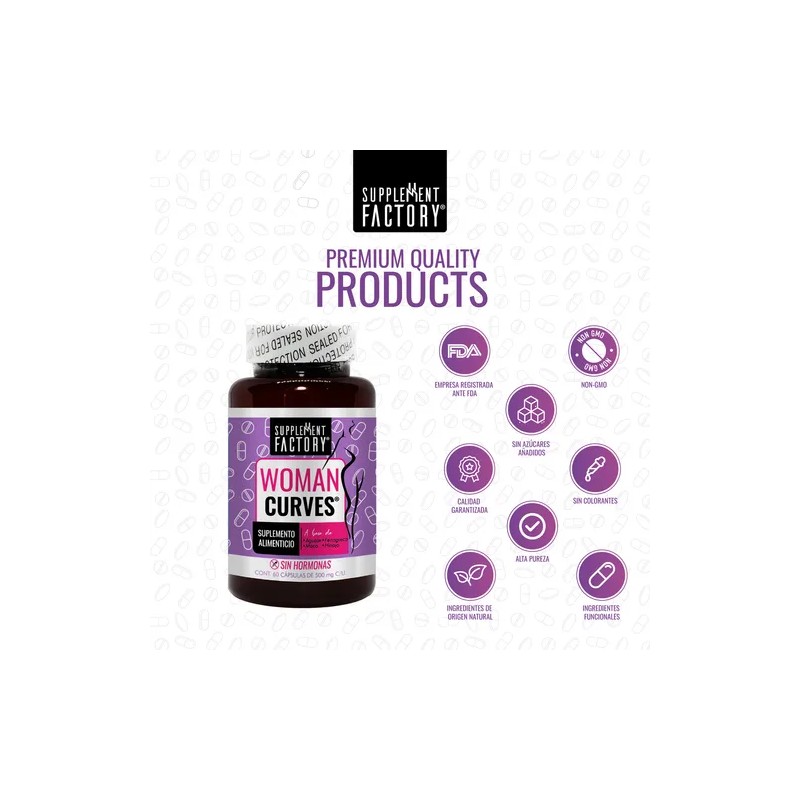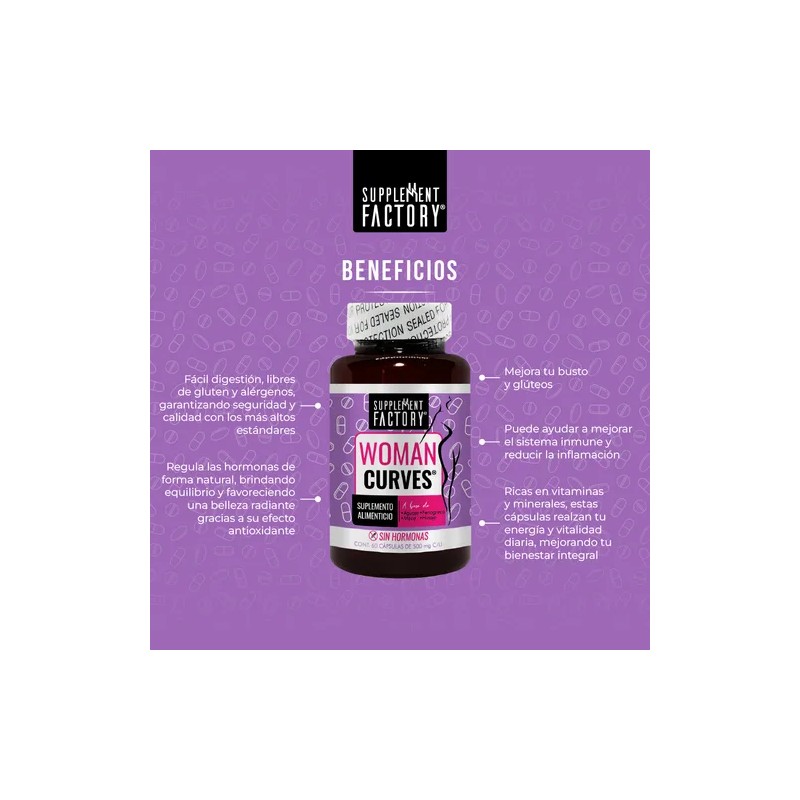 Supplement Factory Woman Curves Mejora y Aumenta tu Busto y Glúteos 60 Cápsulas, con Ingredientes de la + Alta Calidad
