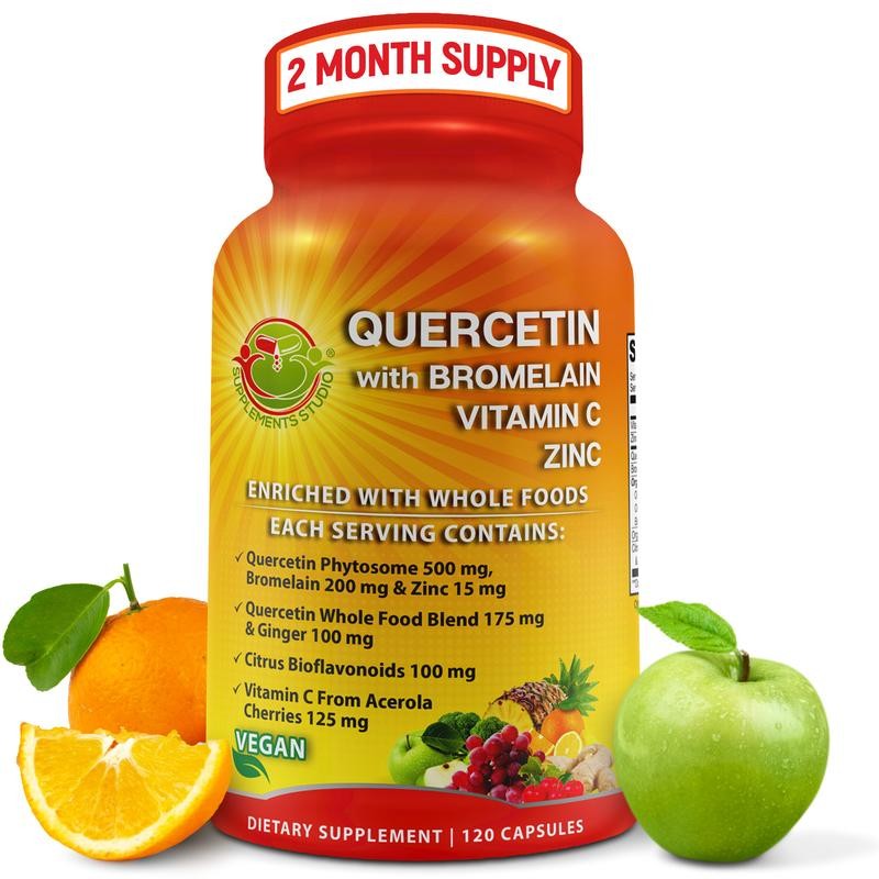SUPPLEMENTS STUDIO Quercetin with Bromelain, Vitamin C, Zinc & Organic Whole Food Quercetin Blend for Immune Support - Specification: 120 count