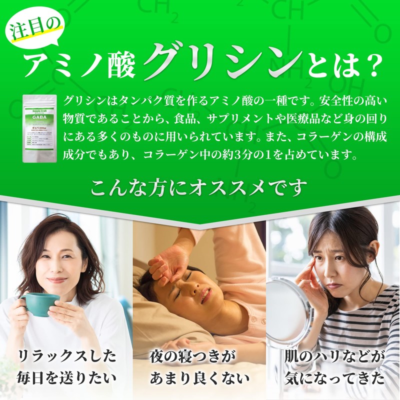 - 使用しているすべての原材料は第三者機関による厳正な規格試験に合格し安全性を確認しています。【原材料名】ギャバ (中国産)/ グリシン、HPMC(植物カプセル)