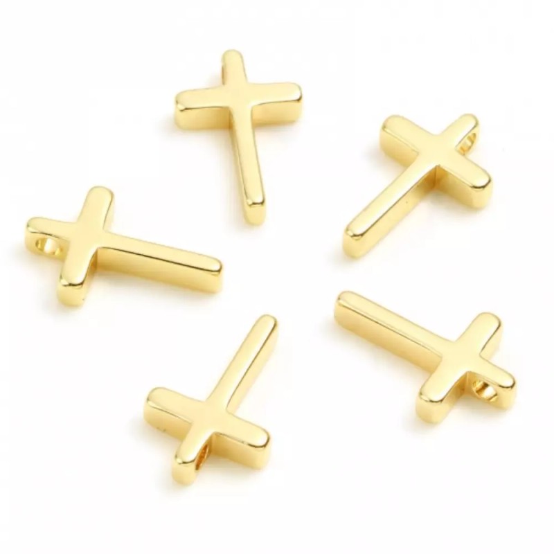 These small cross pendants in a shiny gold plated finish are flying off the shelves! They are perfect for your necklace or bracelet creations.
