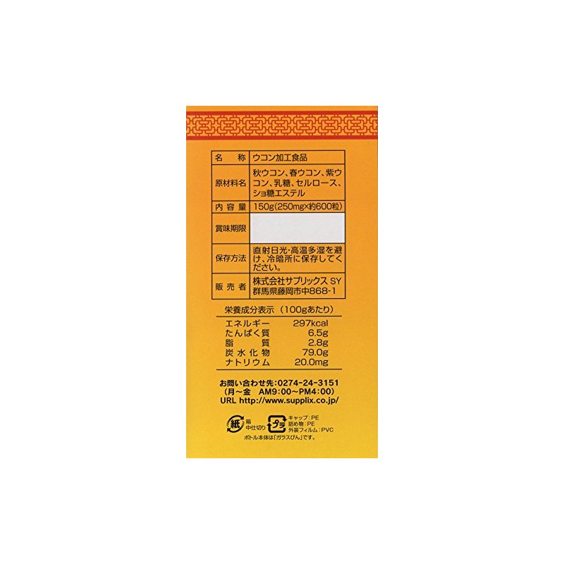 Supplix(サプリックス) 沖縄県山原産100%ウコン粒 600粒(約2ケ月分)