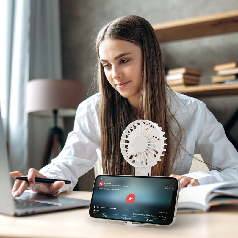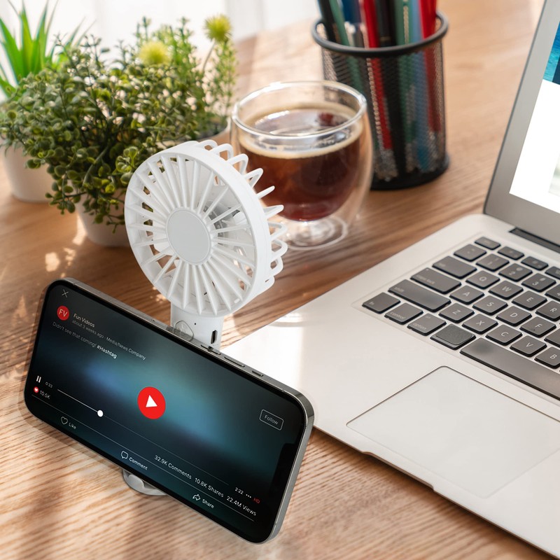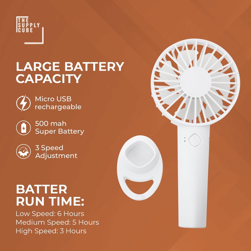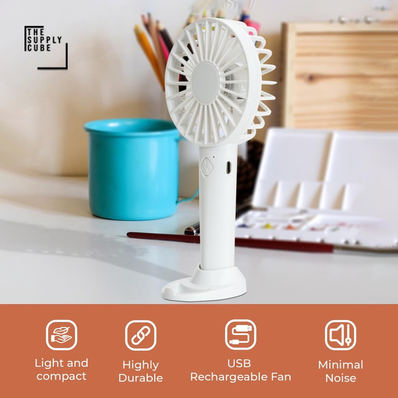 Supply Cube Handheld Fan, Hand Fan, Portable Fan with 3 Speeds | USB Hand Fan Rechargeable, Portable Fan Handheld | Hand Held Fan, USB Fan, Mini Fan Handheld, Travel Fan & Free Standing (White)