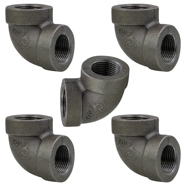 SUPPLY GIANT BXNL0112-5 Malleable Iron FNPT Threaded Nipples Connector, Connects to 1-1/2 Inch Black (Pack of 5) BXFL0112-5 XH 90 Degree Elbow Pipe Fitting, 1-1/2"