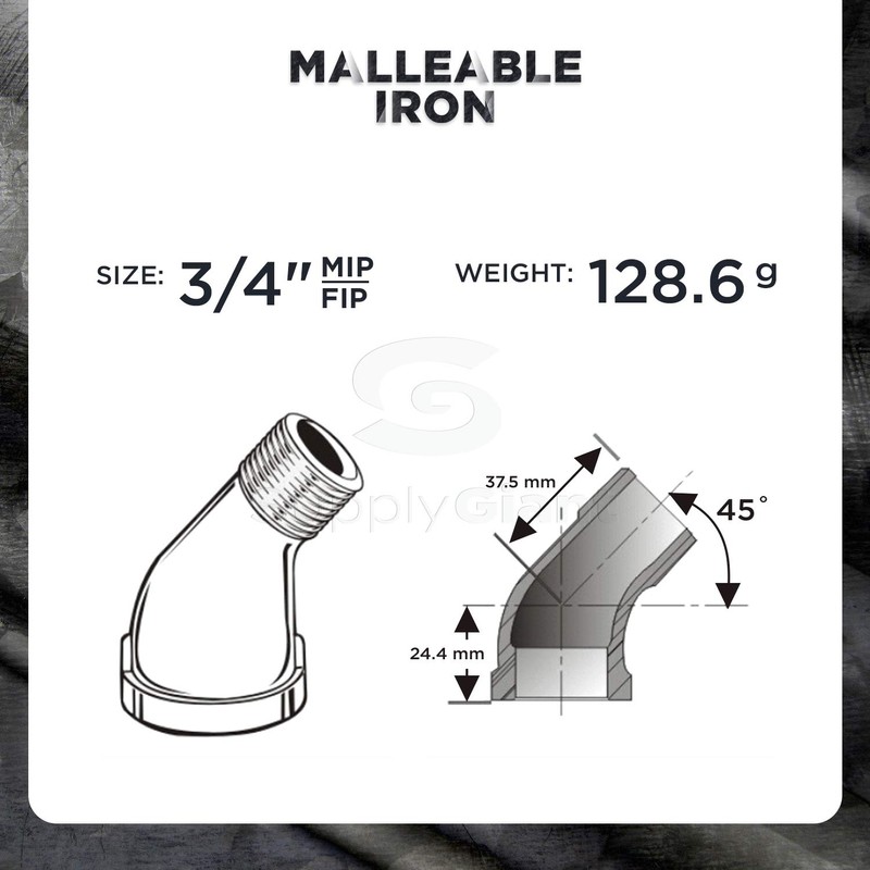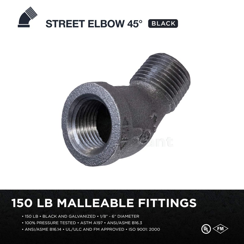 Supply Giant CNTG0034 3/4" 45 Degree Street Malleable Iron Fitting for High Pressures with Black Finish, 0.75 Inch