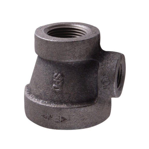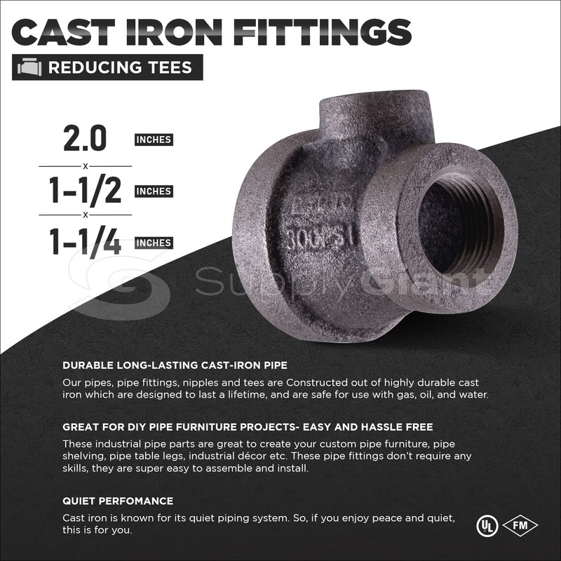 Supply Giant CU4341H 2" x 1-1/2" x 1-1/4" Cast Iron Threaded Reducing Tee for Industrial Piping or DIY Projects with Black Finish