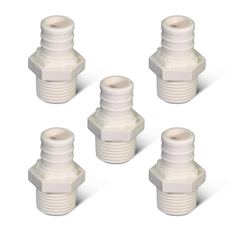 Supply Giant QQNB3412-5 Plastic Poly Alloy Adapter PEX x MPT Barb Pipe Fitting 3/4'' x 1/2'' White (5 Pack)