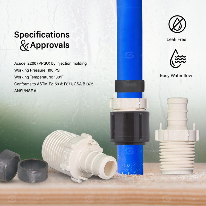 - COMPATIBLE WITH: a 3/4 in. PEX and a 1/2 in. FPT pipe