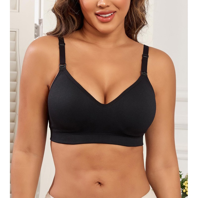- Convenient: The breastfeeding bra features sexy deep v-neck, 3 row hook and eye back closure with the extra extenders, more durable. We provide 3XL plus size for busty nursing women.Adjustable straps and v-neck design can feed your baby quickly.