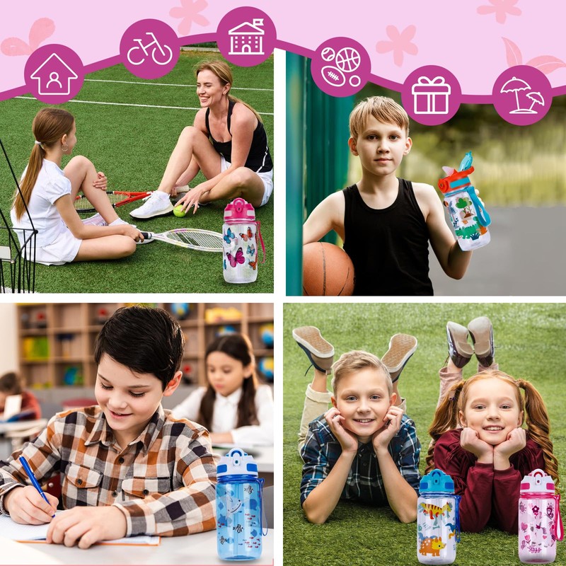 - [Fun Design for Boys & Girls]Adorned with charming and unique designs, this water bottle is as stylish as it is functional. The vibrant prints are crafted to resist fading, even after extended use, ensuring the bottle remains as delightful as the day it was purchased. Its playful and eye-catching design will captivate your child’s imagination, encouraging them to stay hydrated while cherishing their bottle as a beloved companion.